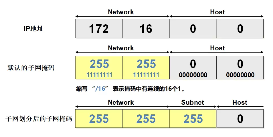 1 | 前缀表示:为了进一步简化子网掩码的表达,还可以用“/”加上网络位的位数来代表子网掩码,叫做前缀长度。比如,255.255.0.0,可以表示成“/16”,255.255.255.0可表示为“/24”。 |