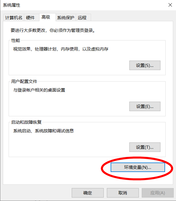 此电脑右键—->属性—->高级系统设置—->环境变量