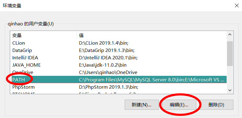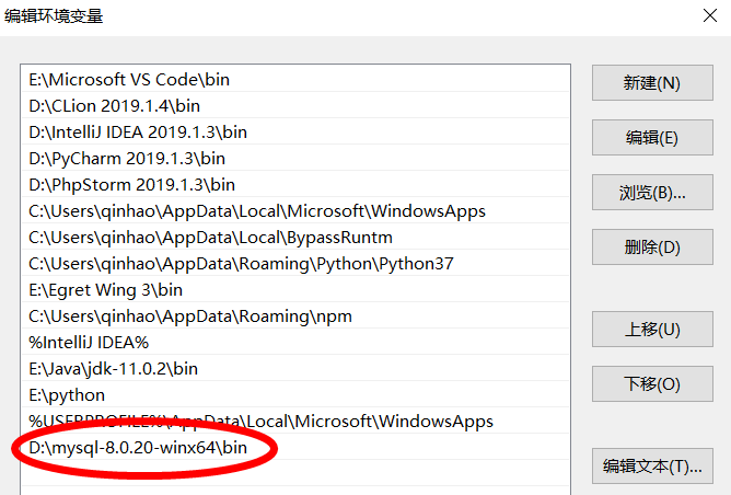 将MySQL文件夹的bin目录的路径复制,点击右侧新建,添加到环境变。