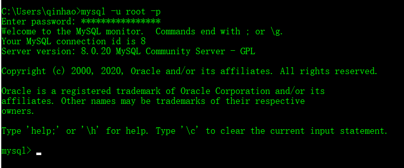 出现下面的提示又电脑的路径变成了mysql> 表示我们连接数据库成功。